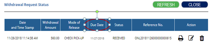 To know your withdrawal request due date, go to the WITHDRAWAL STATUS page by: