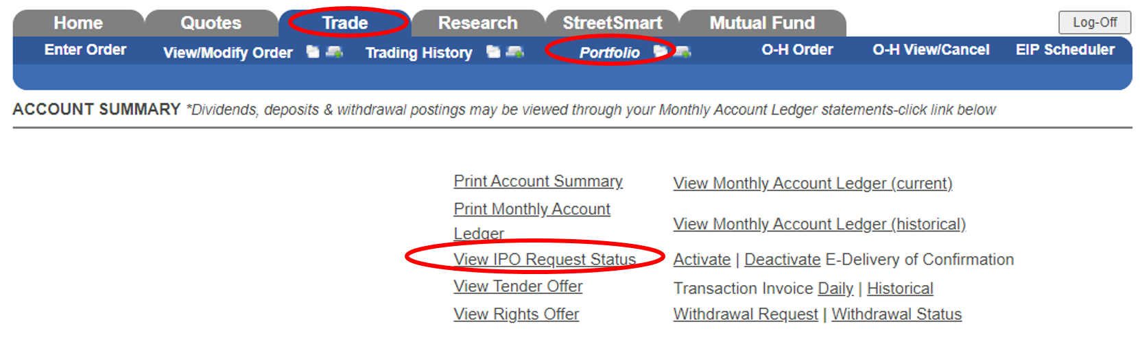 Here is a sample picture where you can find the VIEW IPO REQUEST STATUS link:
