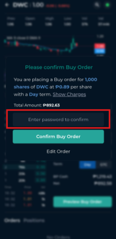 Tap Preview Buy Order (or Sell Order) to proceed.